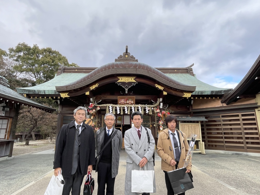 2023年1月10日(火)13時より津市にある結城神社にて組合員の安全祈願の祝詞を奏上して頂きました。 例年は理事及び、指導員、事務局が参列しますが、コロナ対策で執行部と事務局で代表して参列してきました。 宮司さんによる祝詞奏上の後、伊藤理事長が玉串を捧げ組合員の安全を祈願しました。 昨年度、県板事務局の神棚に祀ってあったお札や福矢をどんど焼きの中に入れて、新しいものを授かってきました。 その後理事会に先立ち、県板事務所にある神棚に理事全員で参拝してから理事会が開催されました。
